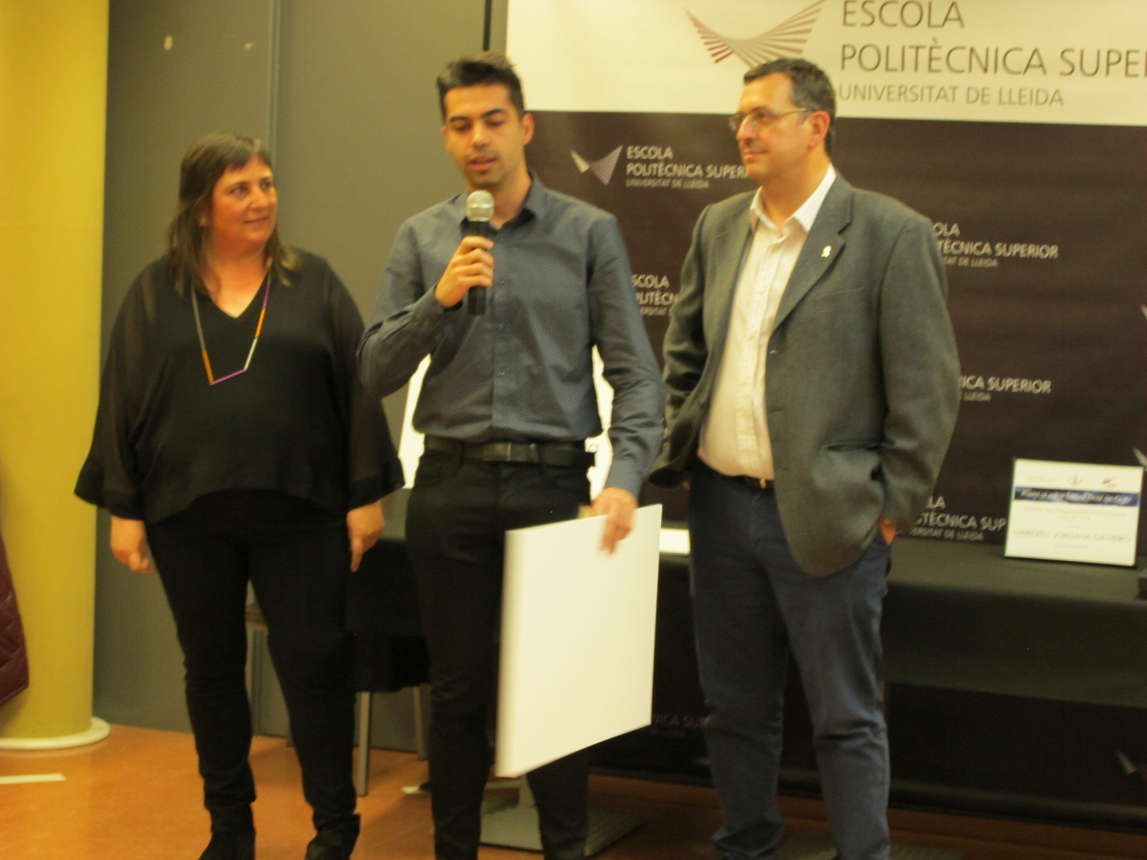 - Ivan Rey Torrente, millor expedient acadèmic del Màster en Enginyeria Industrial. Va rebre el premi de mans del Sr. Guillem Boira Herreros, President del Col·legi Oficial d’Enginyers Industrials de Catalunya, demarcació de Lleida, que en representació del col·legi li lliurarà un any de col·legiació gratuïta i un obsequi.